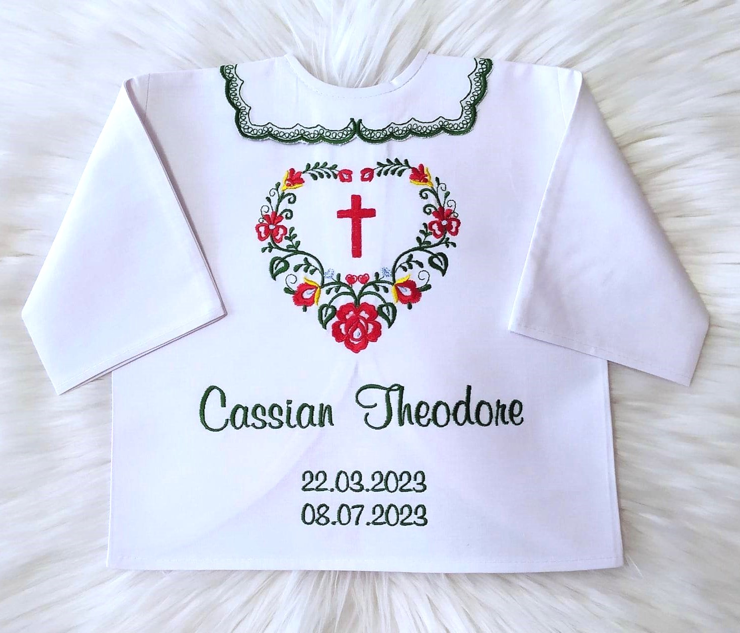 Vyšívaná košieľka na krst je tradičným kresťanským symbolom sviatosti krstu. Košieľka je univerzálnej veľkosti, dieťatku sa počas obradu neoblieka ,len sa symbolicky položí na dieťa. Košieľka je ušitá zo 100% bavlny s certifikátom pre deti do 3 rokov. Výšivka je vyšívaná kvalitnými niťami, s certifikátom vhodným pre deti do 3 rokov.