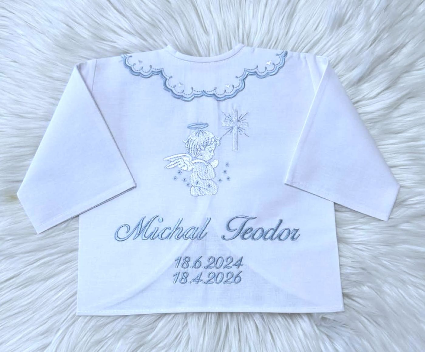 Vyšívaná košieľka na krst je tradičným kresťanským symbolom sviatosti krstu. Košieľka je univerzálnej veľkosti, dieťatku sa počas obradu neoblieka ,len sa symbolicky položí na dieťa. Košieľka je ušitá zo 100% bavlny s certifikátom pre deti do 3 rokov. Výšivka je vyšívaná kvalitnými niťami, s certifikátom vhodným pre deti do 3 rokov.