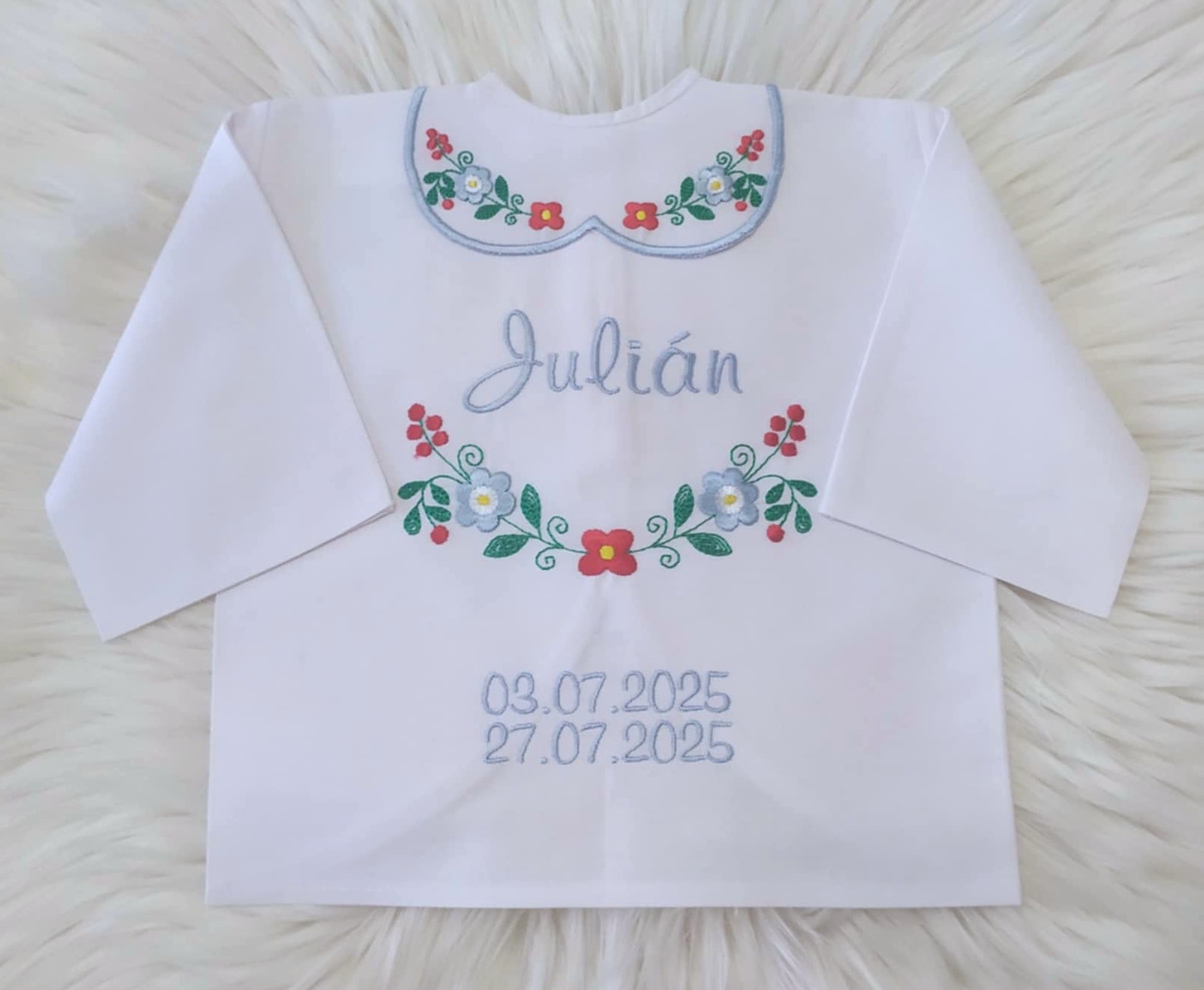 Vyšívaná košieľka na krst je tradičným kresťanským symbolom sviatosti krstu. Košieľka je univerzálnej veľkosti, dieťatku sa počas obradu neoblieka ,len sa symbolicky položí na dieťa. Košieľka je ušitá zo 100% bavlny s certifikátom pre deti do 3 rokov. Výšivka je vyšívaná kvalitnými niťami, s certifikátom vhodným pre deti do 3 rokov.