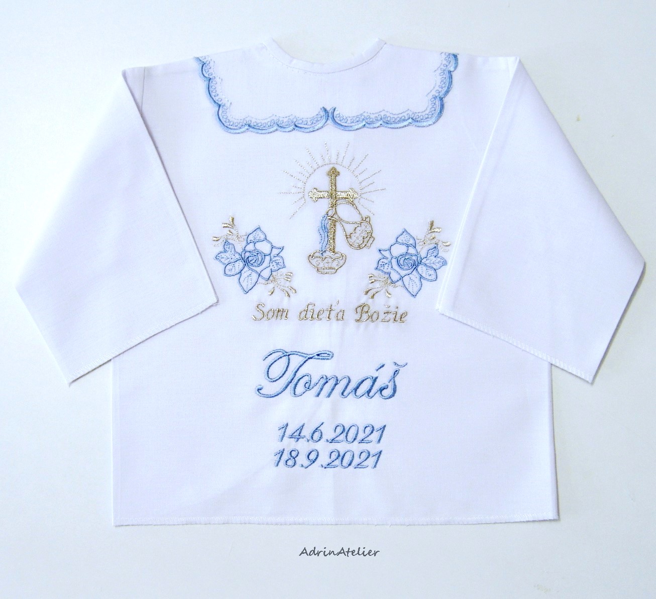 Vyšívaná košieľka na krst je tradičným kresťanským symbolom sviatosti krstu. Košieľka je univerzálnej veľkosti, dieťatku sa počas obradu neoblieka ,len sa symbolicky položí na dieťa. Košieľka je ušitá zo 100% bavlny s certifikátom pre deti do 3 rokov. Výšivka je vyšívaná kvalitnými niťami, s certifikátom vhodným pre deti do 3 rokov.