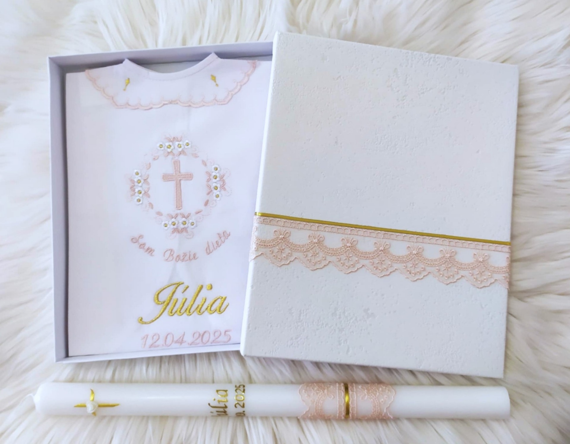 Ponúkame košieľky a sviečky na krst, ktoré sú vyrábané s láskou, starostlivosťou a dôrazom na každý detail. Každý kúsok je originál – personalizovaný menom, dátumom krstu či symbolom, ktorý spraví tento veľký deň ešte výnimočnejším.