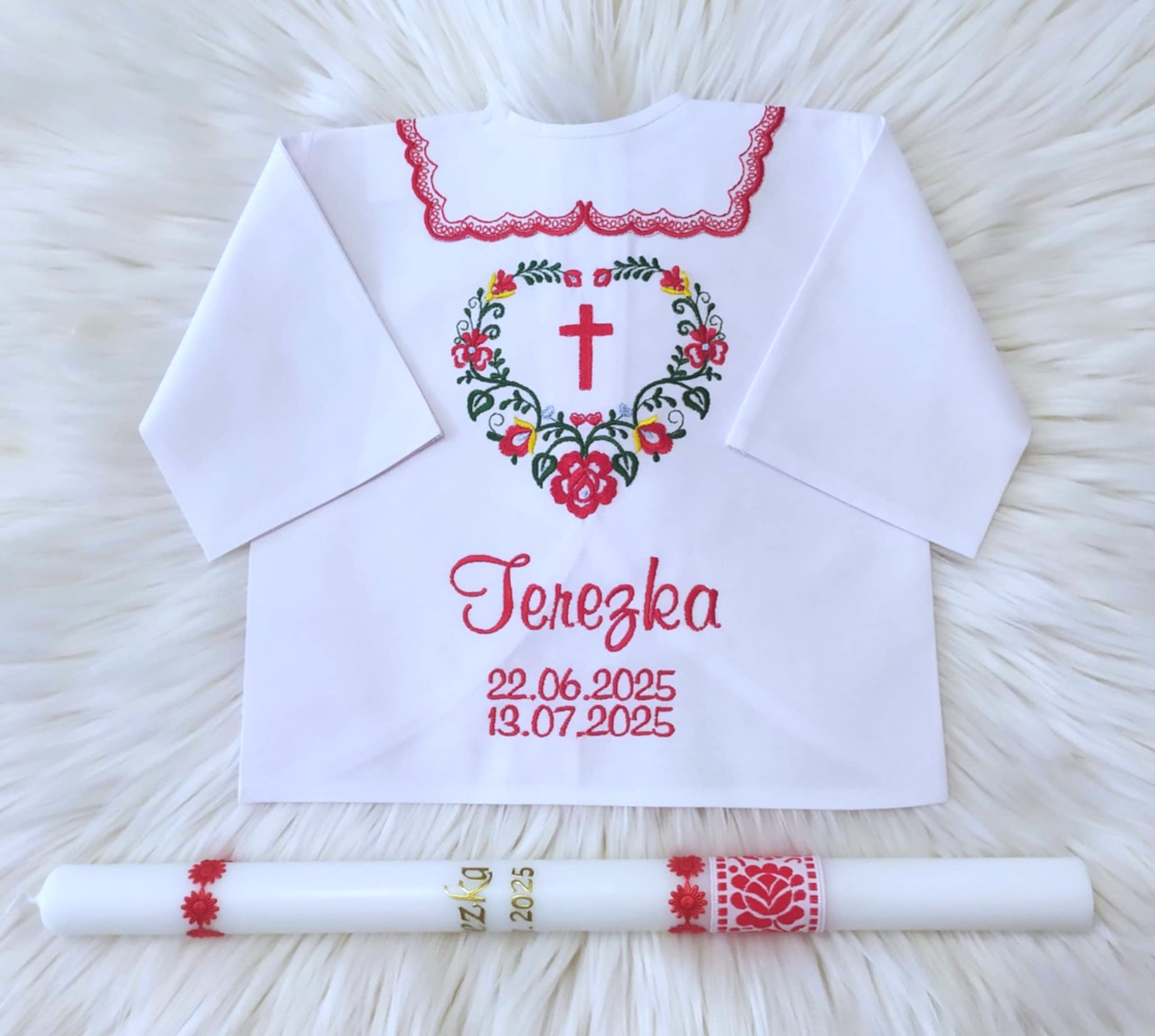 set na krst s menom – košieľka folk, sviečka personalizovaná