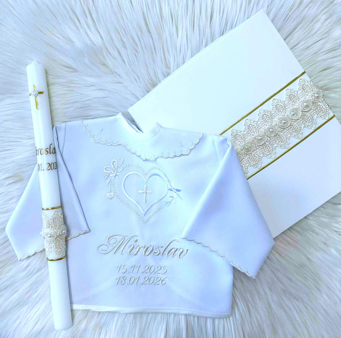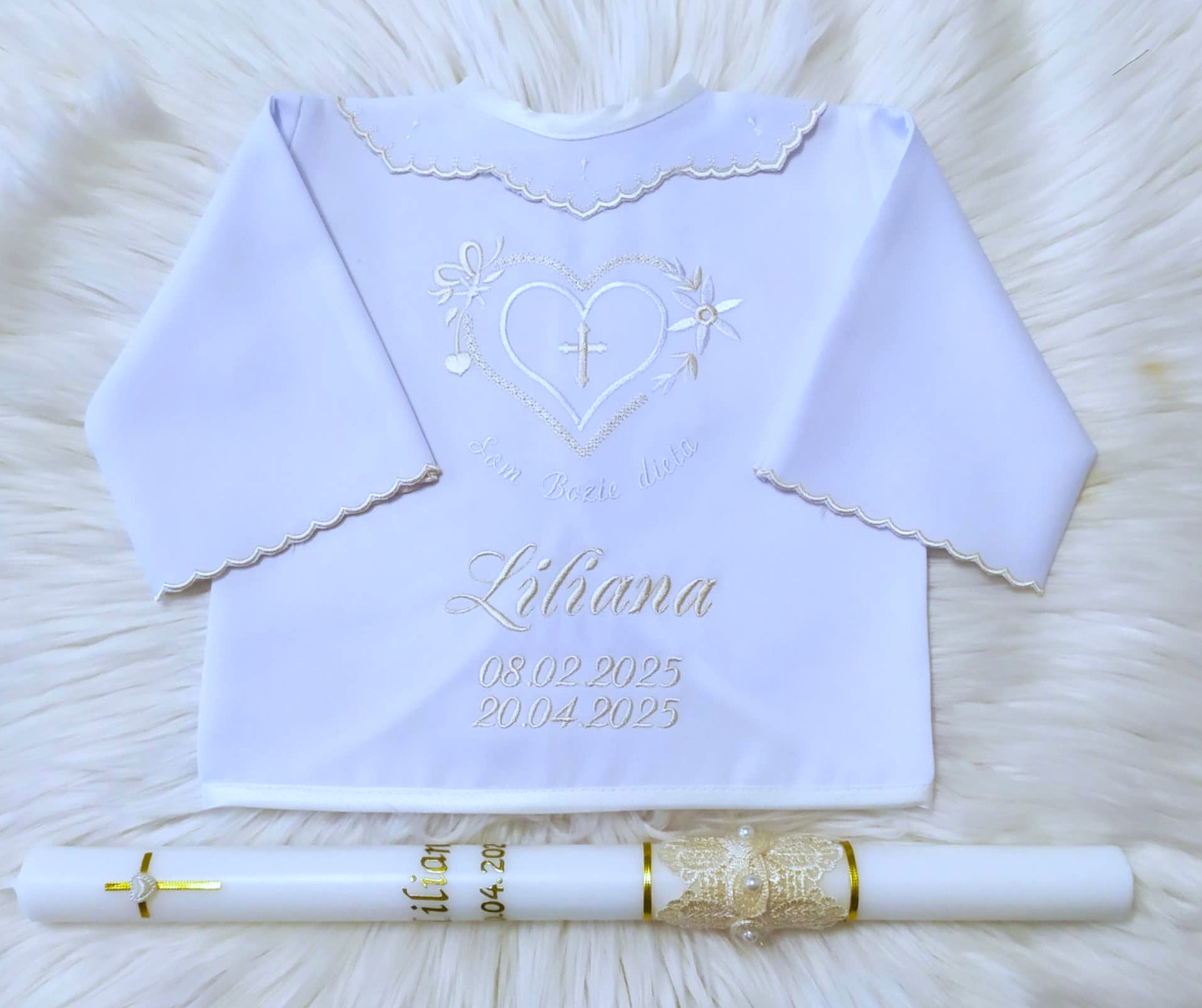 Košieľka na krst s menom – biela ívory
