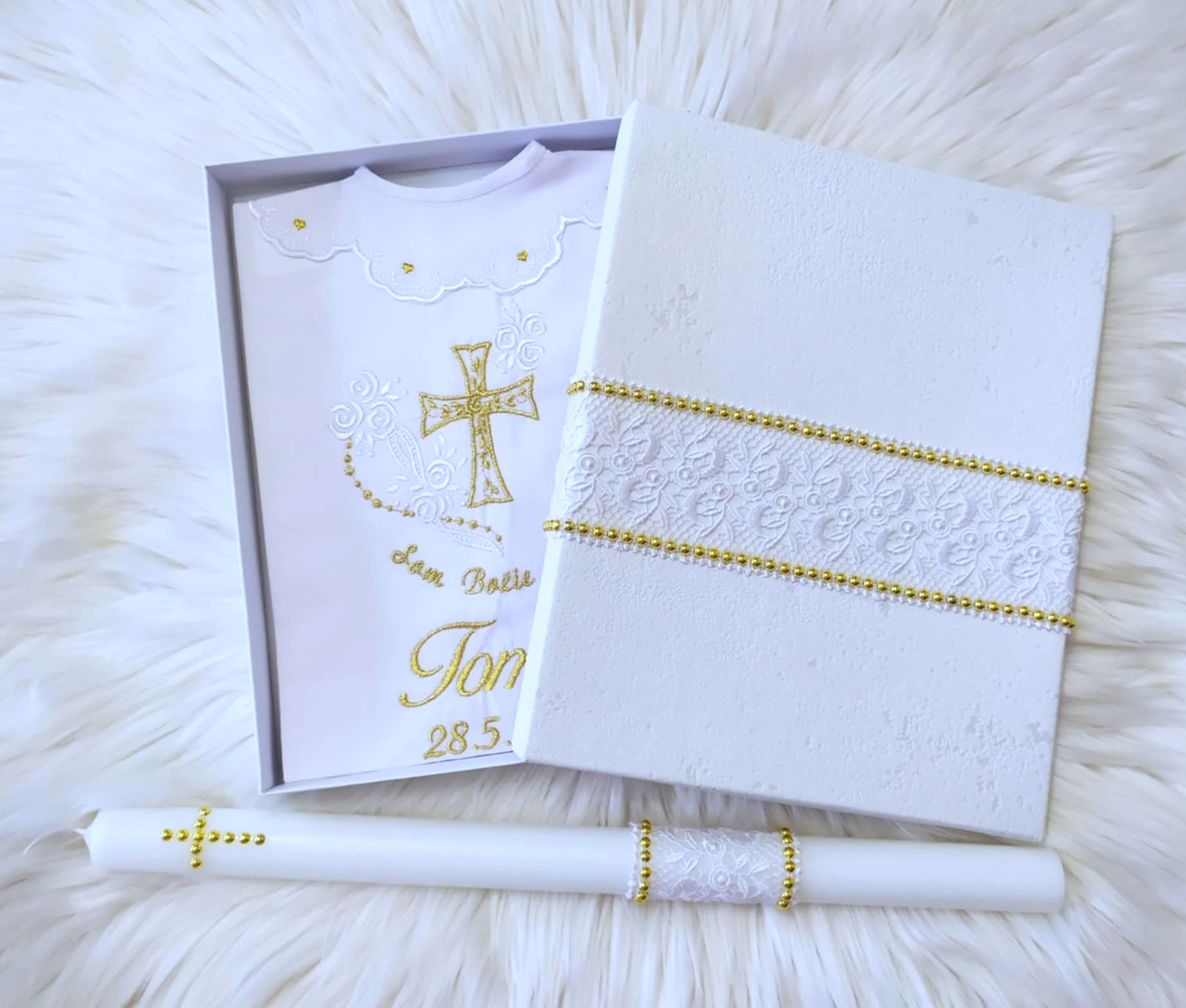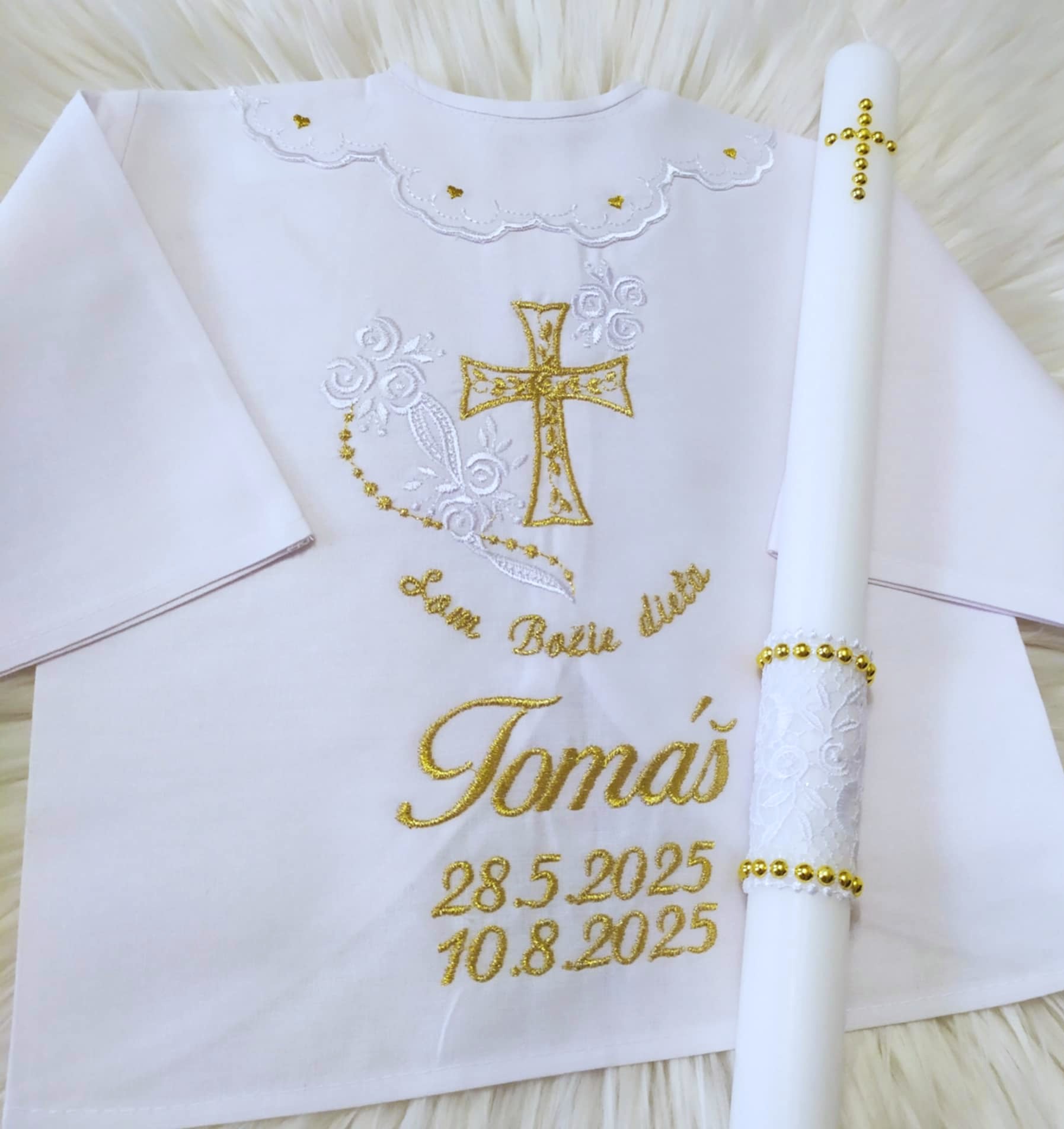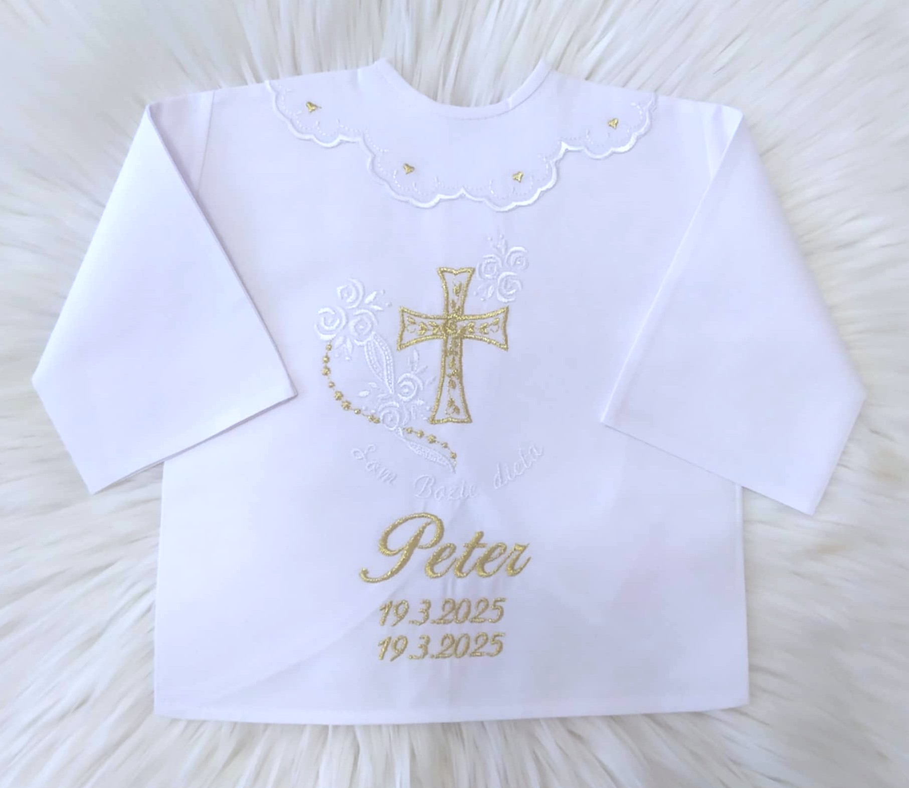 Košieľka na krst s menom – biela zlatá