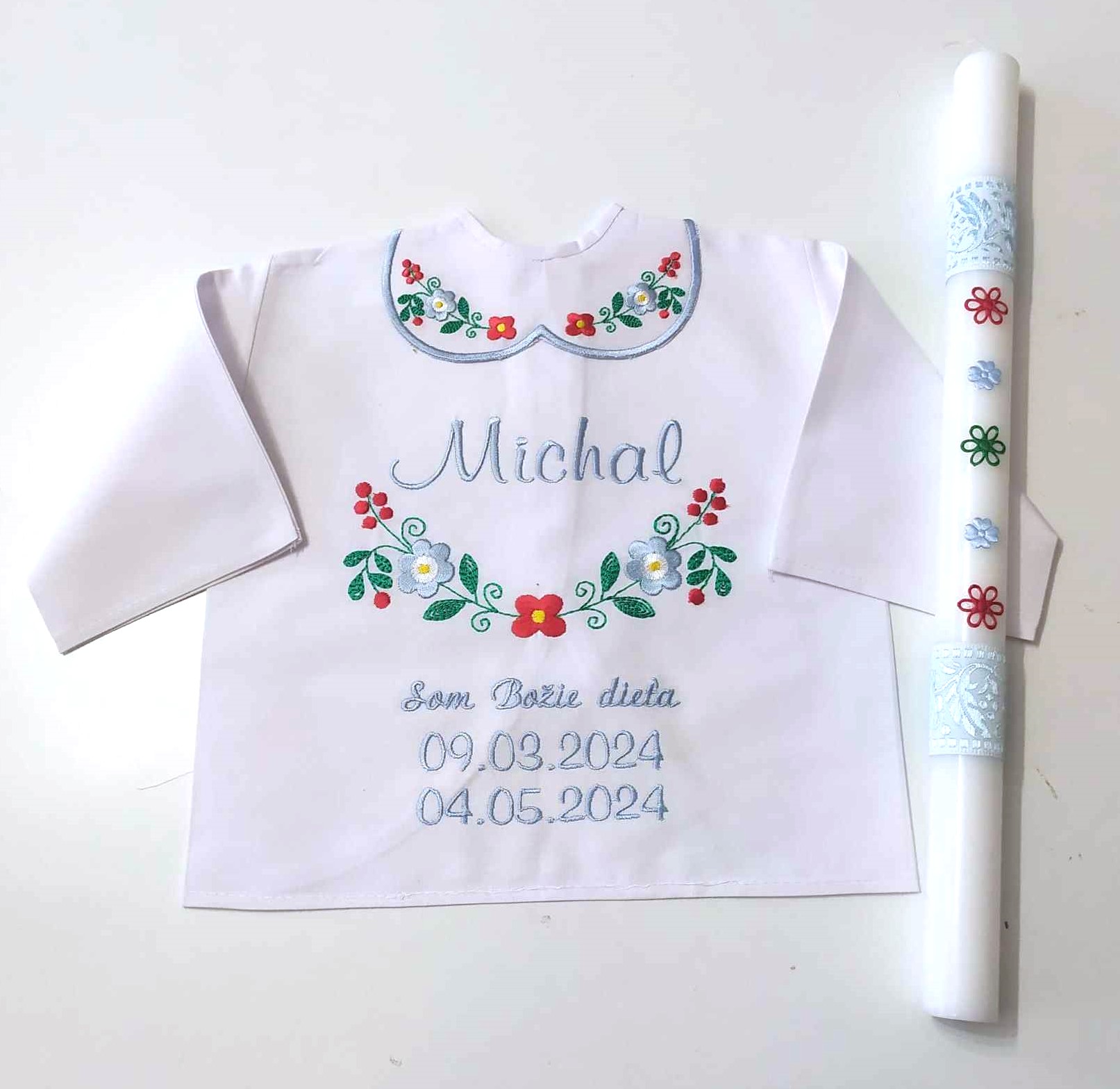 set na krst s menom – košieľka folk , sviečka nepersonalizovaná