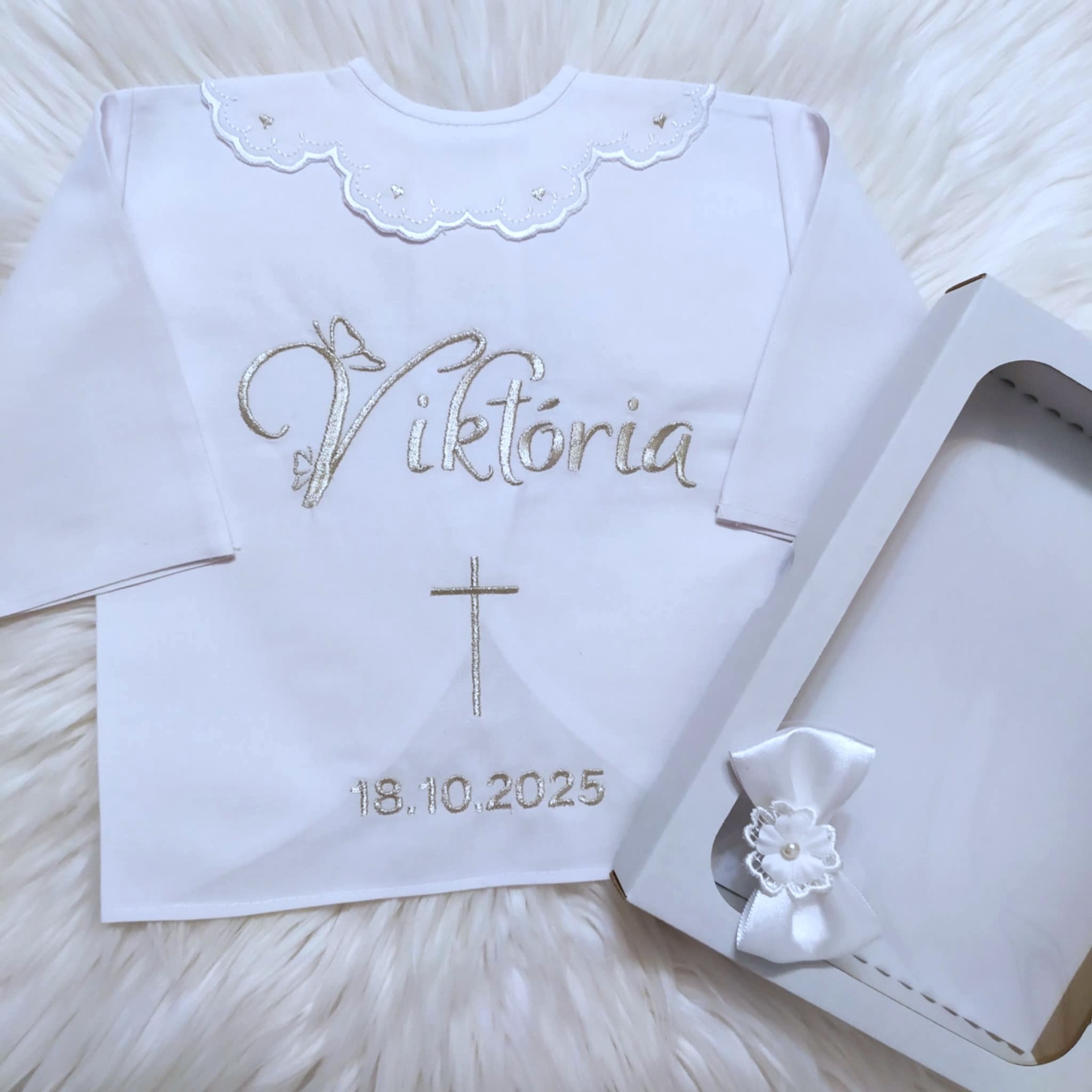 Súprava na krst-košieľka + sviečka +krabička+ ruženec